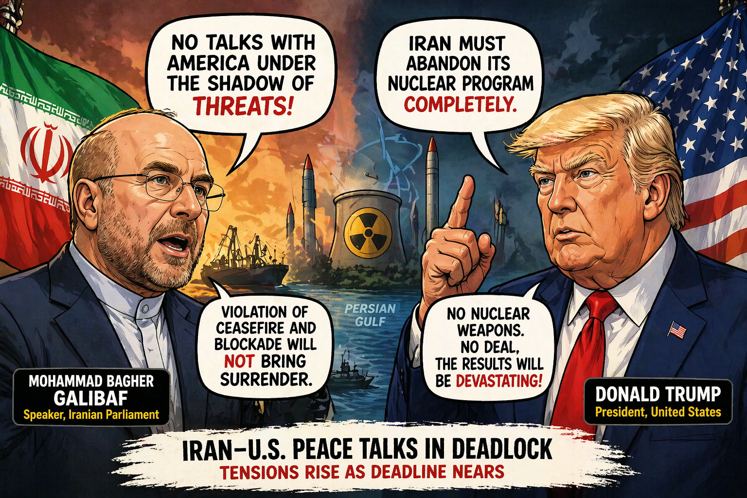 ईरान-अमेरिका तनाव बढ़ा: “धमकियों के साये में नहीं होगी वार्ता”, गालिबाफ का सख्त संदेश