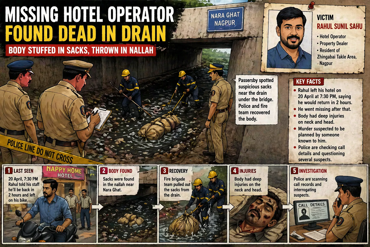 नागपुर में सनसनीखेज वारदात: लापता होटल संचालक का शव बोरी में भरकर नाले में फेंका गया