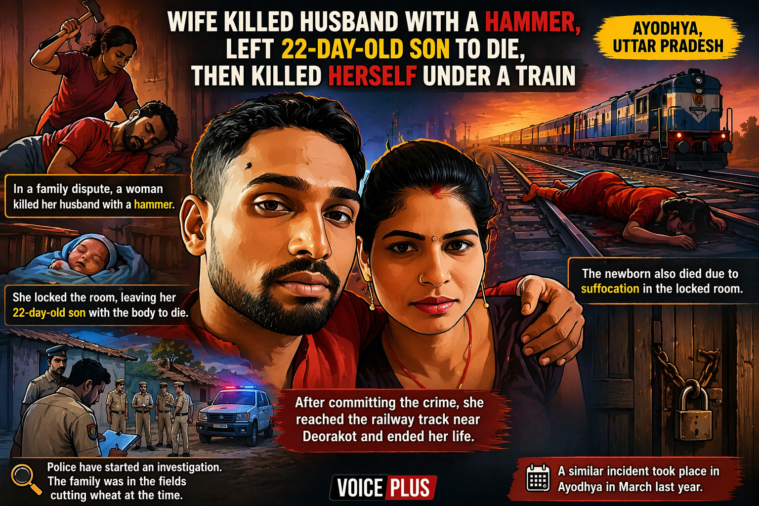 पत्नी ने हथौड़े से पति की हत्या कर दी, नवजात को कमरे में छोड़ खुद ट्रेन से कटकर की आत्महत्या