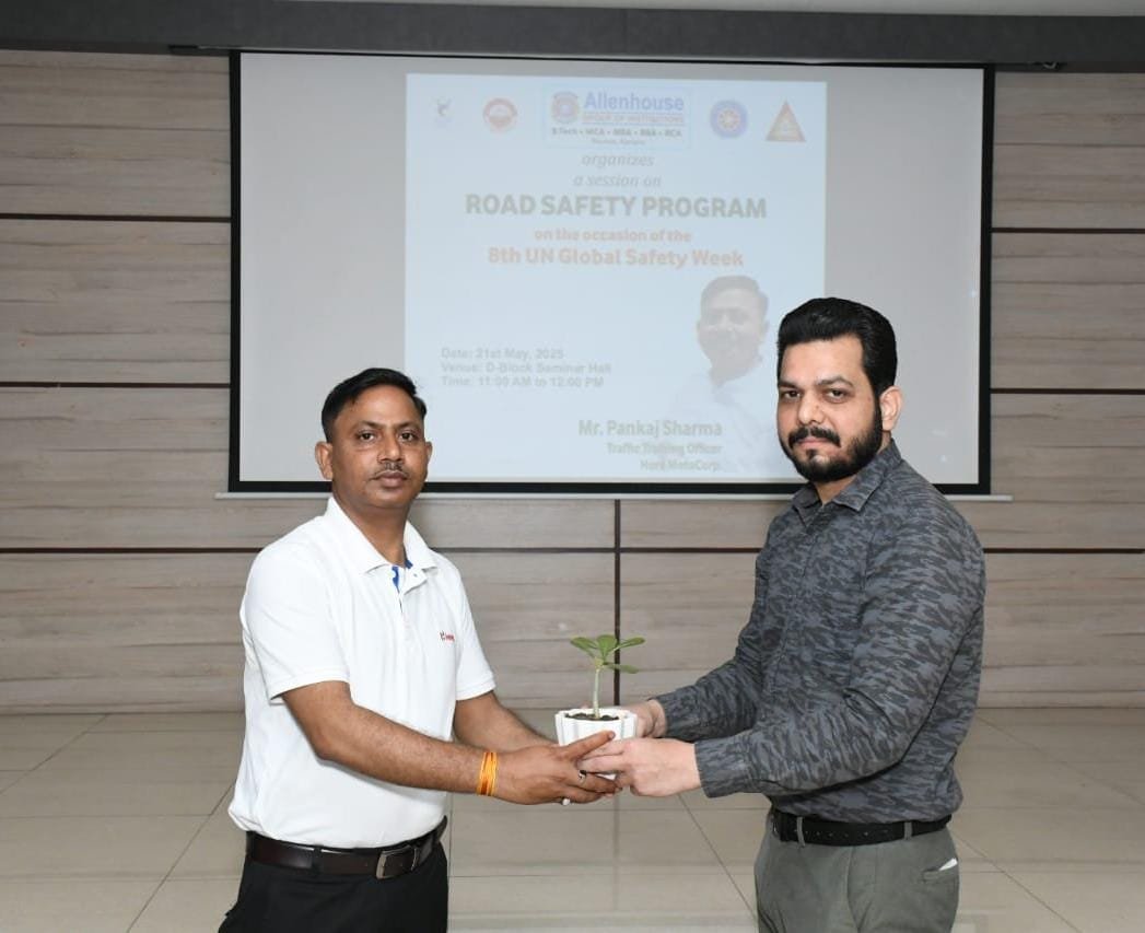 यू एन ग्लोबल रोड सेफ्टी वीक के अन्तर्गत एलनहाउस बिजनेस स्कूल, रूमा कानपुर में एमबीए के छात्र- छात्राओं के लिए सड़क सुरक्षा कार्यशाला का आयोजन किया गया, जिसमें मुख्य अतिथि के रूप में यातायात प्रशिक्षण पार्क, हीरो मोटोकॉर्प लखनऊ से पंकज शर्मा उपस्थित हुए।