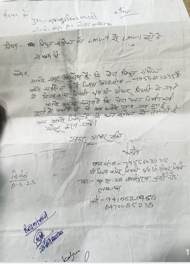 उपभोक्ता बृजेश कुमार (कनेक्शन संख्या: 9955603235) ने बिजली कनेक्शन के विधा परिवर्तन (Load Category Change) के लिए आवेदन किया – LMV-9 से LMV-1 में।