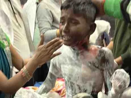 पास ही मौजूद निवासी सुधांशु ने जान जोखिम में डालकर बच्चे पर कंबल डालकर आग बुझाई और उसे बचाया।