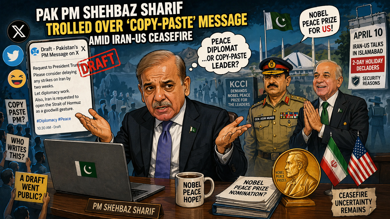 ईरान और अमेरिका के बीच संभावित युद्धविराम (सीजफायर) को लेकर पाकिस्तान के प्रधानमंत्री शहबाज शरीफ एक नए विवाद में घिर गए हैं। सोशल मीडिया पर उन्हें “कॉपी-पेस्ट” मैसेज पोस्ट करने के आरोपों के चलते जमकर ट्रोल किया जा रहा है।