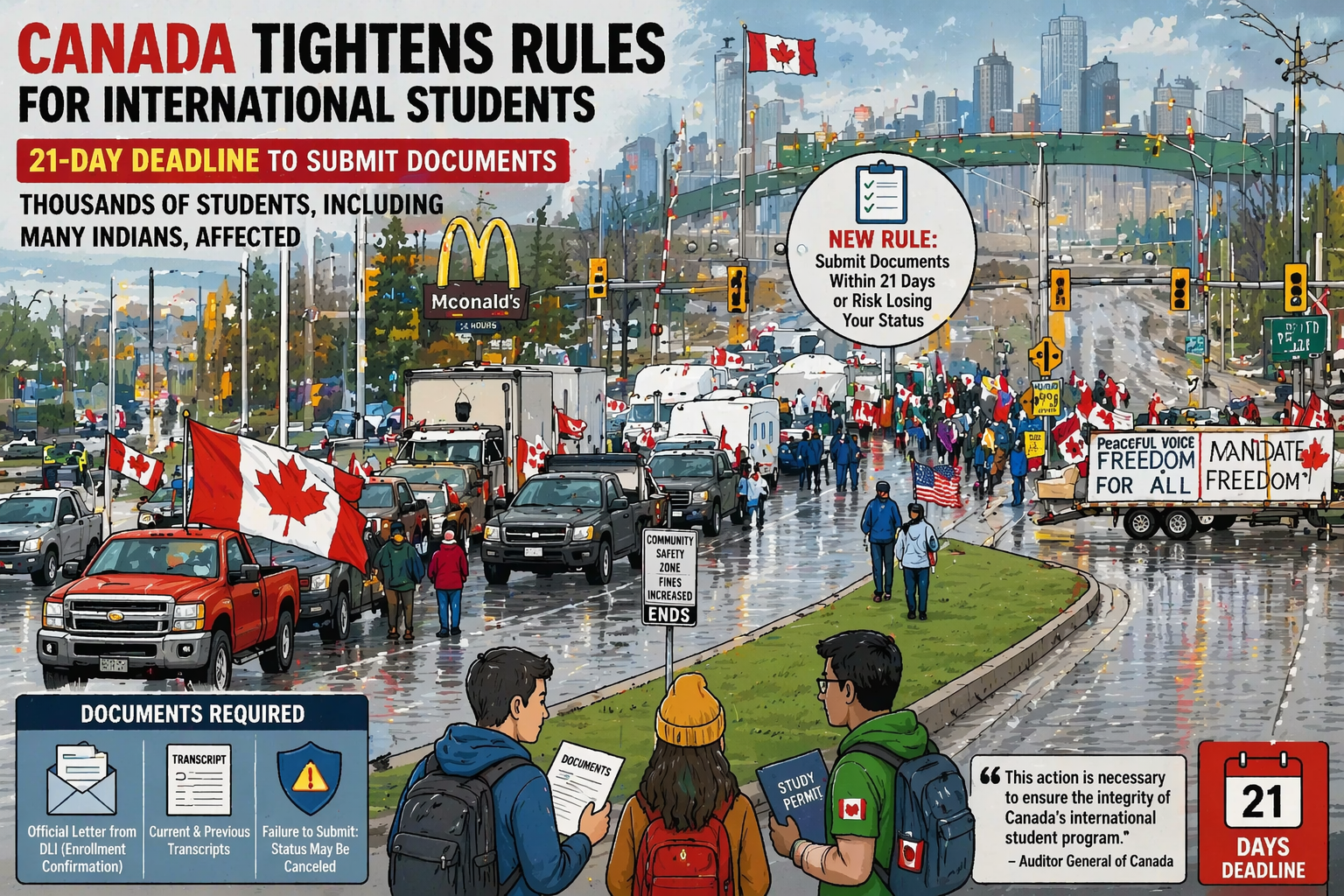 कनाडा का सख्त कदम: अंतरराष्ट्रीय छात्रों को 21 दिन में दस्तावेज जमा करने का अल्टीमेटम, भारतीय छात्र भी प्रभावित