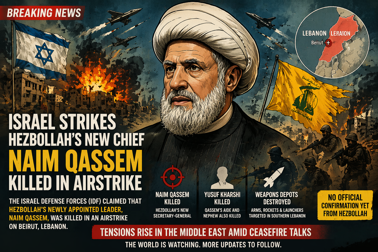मध्य-पूर्व में जारी तनाव के बीच इजरायल ने एक बड़ा सैन्य दावा किया है। इजरायली रक्षा बल (IDF) के अनुसार, लेबनान की राजधानी बेरूत में किए गए ताजा हवाई हमले में हिजबुल्लाह के नए चीफ नईम कासिम को मार गिराया गया है।
