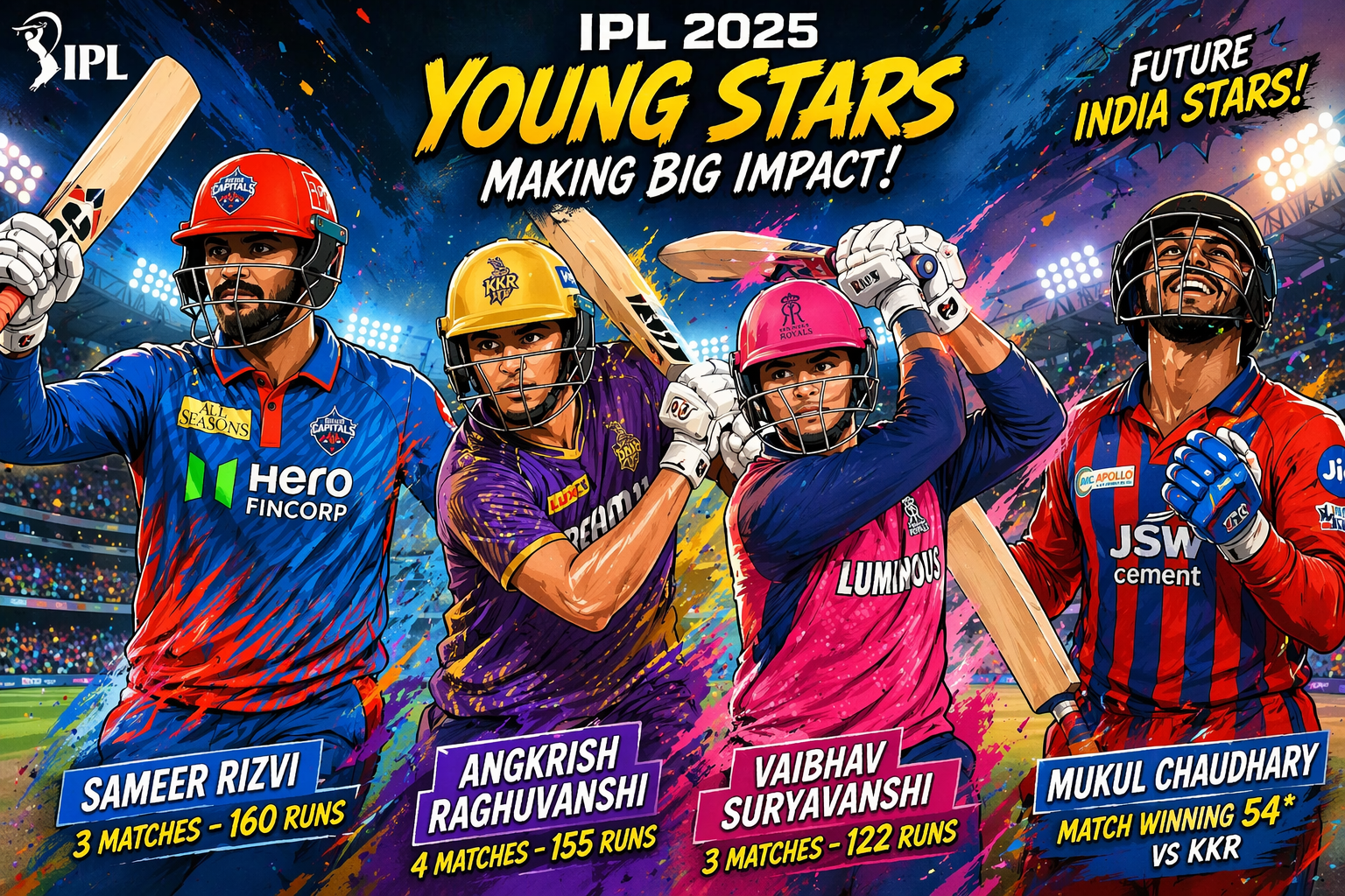 हालांकि, समीर रिजवी और अंगक्रश रघुवंशी जैसे युवा खिलाड़ी उनके काफी करीब हैं, जिससे मुकाबला और भी दिलचस्प हो गया है।