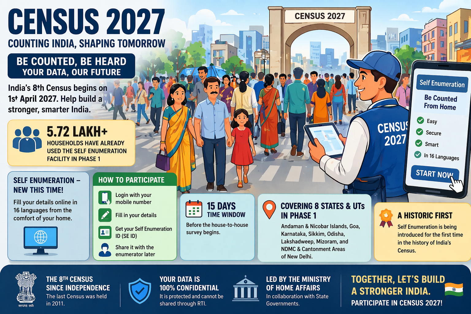 यह सुविधा उन राज्यों और केंद्र शासित प्रदेशों में उपलब्ध कराई गई है, जहां 16 अप्रैल से मकान सूचीकरण और हाउस लिस्टिंग ऑपरेशन (HLO) शुरू होना है। इनमें अंडमान और निकोबार द्वीप समूह, गोवा, कर्नाटक, सिक्किम, ओडिशा, लक्षद्वीप, मिजोरम और नई दिल्ली नगरपालिका परिषद (NDMC) तथा दिल्ली कैंट क्षेत्र शामिल हैं।
