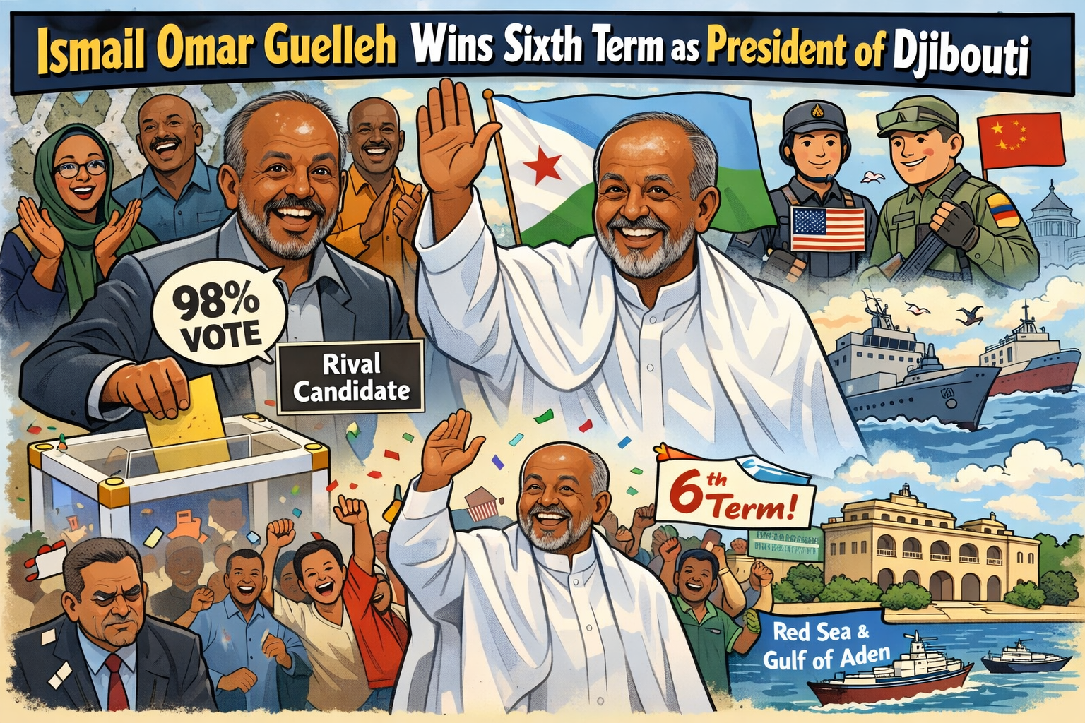 рдореЛрдЧрд╛рджрд┐рд╢реБ/рдЬрд┐рдмреВрддреА: рдЕрдлреНрд░реАрдХреА рджреЗрд╢ рдЬрд┐рдмреВрддреА рдореЗрдВ рд░рд╛рд╖реНрдЯреНрд░рдкрддрд┐ рдЪреБрдирд╛рд╡ рдХреЗ рдирддреАрдЬреЛрдВ рдиреЗ рдПрдХ рдмрд╛рд░ рдлрд┐рд░ рд╕рддреНрддрд╛ рдХреА рдирд┐рд░рдВрддрд░рддрд╛ рдХреЛ рдордЬрдмреВрдд рдХрд┐рдпрд╛ рд╣реИред рджреЗрд╢ рдХреА рд▓рдЧрднрдЧ 10 рд▓рд╛рдЦ рдЖрдмрд╛рджреА рдХреЗ рдмреАрдЪ рд╣реБрдП рдЪреБрдирд╛рд╡ рдореЗрдВ рдЗрд╕реНрдорд╛рдЗрд▓ рдЙрдорд░ рдЧреБрд▓реЗрд╣ рдиреЗ рднрд╛рд░реА рдмрд╣реБрдордд рд╕реЗ рдЬреАрдд рджрд░реНрдЬ рдХрд░рддреЗ рд╣реБрдП рд▓рдЧрд╛рддрд╛рд░ рдЫрдареА рдмрд╛рд░ рд░рд╛рд╖реНрдЯреНрд░рдкрддрд┐ рдкрдж рд╣рд╛рд╕рд┐рд▓ рдХрд░ рд▓рд┐рдпрд╛ рд╣реИред