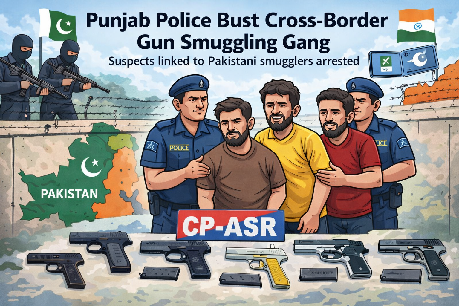 चंडीगढ़/अमृतसर: पंजाब पुलिस ने एक बड़ी कार्रवाई करते हुए सीमा पार से अवैध हथियारों की तस्करी करने वाले गिरोह का भंडाफोड़ किया है। इस ऑपरेशन में पुलिस ने तीन आरोपियों को गिरफ्तार किया है और उनके कब्जे से छह पिस्तौल बरामद की गई हैं।