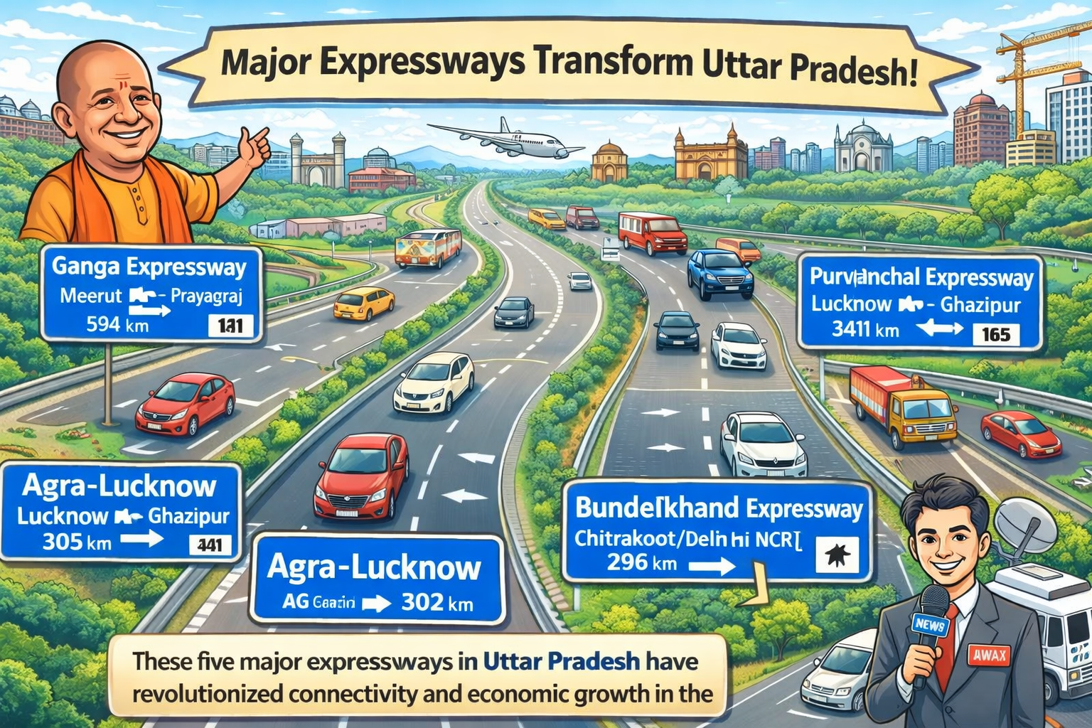 उत्तर प्रदेश अब तेजी से आधुनिक इंफ्रास्ट्रक्चर के नक्शे पर उभरता हुआ राज्य बन चुका है। योगी सरकार के कार्यकाल में विकसित और निर्माणाधीन एक्सप्रेसवे नेटवर्क ने प्रदेश में रफ्तार, कनेक्टिविटी और आर्थिक गतिविधियों को नई दिशा दी है। इन हाई-स्पीड कॉरिडोर ने न सिर्फ यात्रा को आसान बनाया है, बल्कि उद्योग, व्यापार और पर्यटन को भी नई गति प्रदान की है।