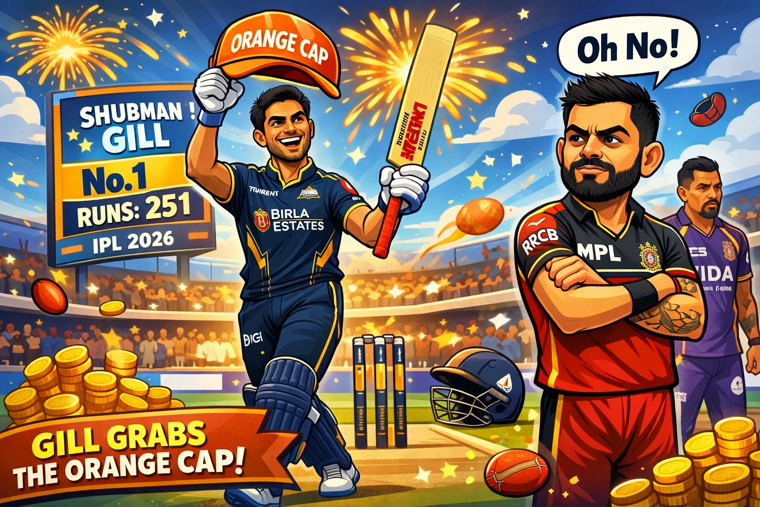 इस प्रदर्शन के साथ गिल ने सीजन में कुल 251 रन पूरे कर लिए हैं और ऑरेंज कैप की रेस में शीर्ष स्थान हासिल कर लिया है। उन्होंने विराट कोहली को पीछे छोड़ा, जिनके नाम अब तक 228 रन दर्ज हैं।