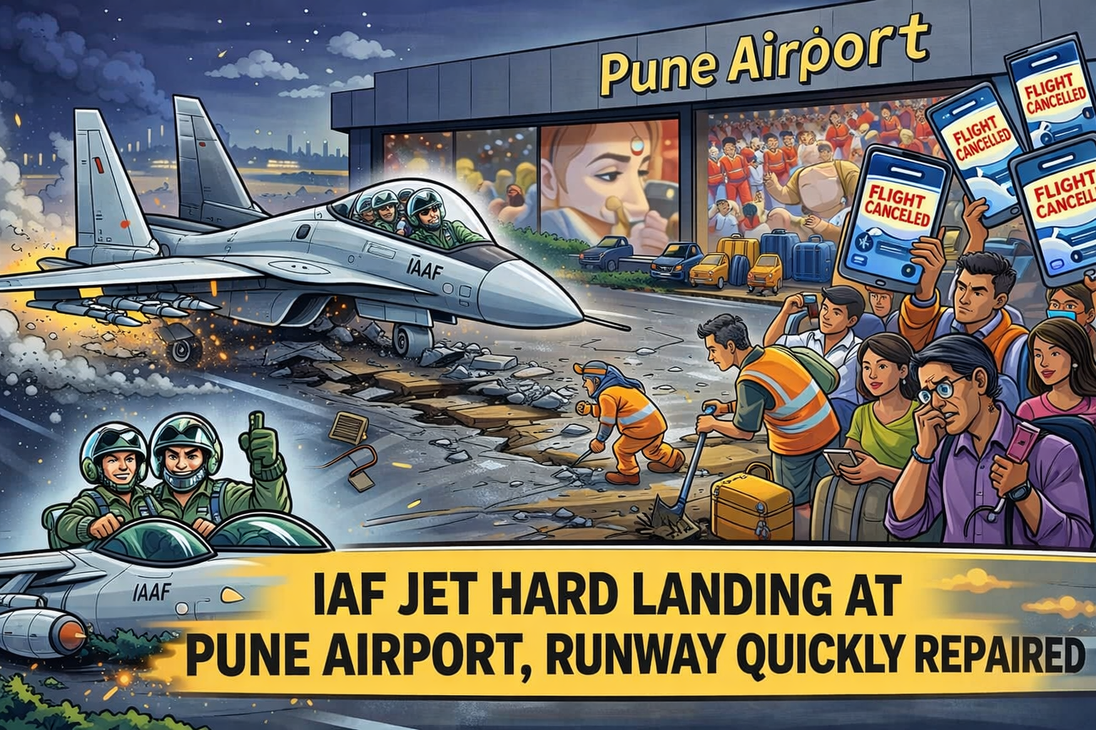 महाराष्ट्र के पुणे अंतरराष्ट्रीय हवाई अड्डे पर शुक्रवार रात भारतीय वायुसेना (IAF) के एक विमान की हार्ड लैंडिंग के बाद रनवे को अस्थायी रूप से बंद करना पड़ा। इस घटना के कारण हवाई सेवाएं प्रभावित हुईं और कई उड़ानों को रद्द करना पड़ा। हालांकि, प्रशासन और तकनीकी टीमों की त्वरित कार्रवाई से शनिवार सुबह तक स्थिति सामान्य कर ली गई।