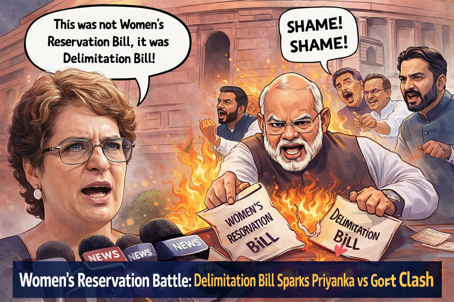कांग्रेस सांसद प्रियंका गांधी ने केंद्र सरकार पर निशाना साधते हुए कहा कि यह “महिला आरक्षण नहीं, बल्कि परिसीमन बिल” था। उन्होंने आरोप लगाया कि सरकार महिला आरक्षण की आड़ में परिसीमन लागू करना चाहती थी, जिसे विपक्ष स्वीकार नहीं कर सकता।