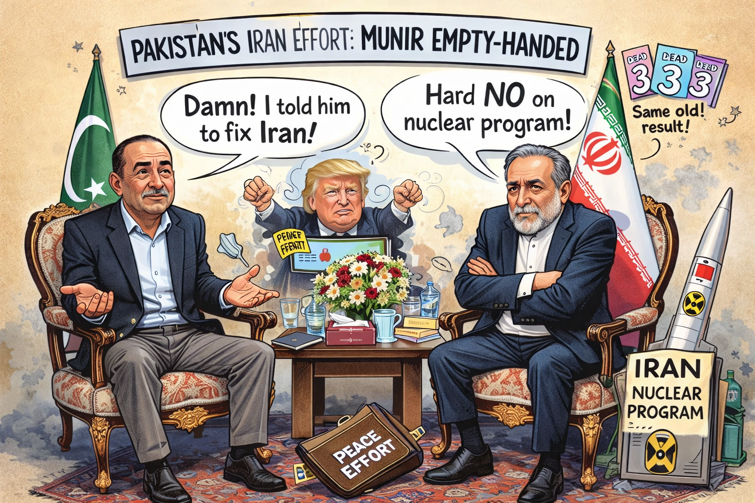 पाकिस्तान के आर्मी चीफ आसिम मुनीर का तीन दिवसीय ईरान दौरा बिना किसी ठोस नतीजे के समाप्त हो गया। अमेरिका और ईरान के बीच मध्यस्थता की कोशिशों के तहत हुआ यह दौरा कूटनीतिक स्तर पर अपेक्षित सफलता हासिल नहीं कर सका। ईरान ने दो टूक शब्दों में स्पष्ट कर दिया कि वह अपने परमाणु कार्यक्रम से किसी भी सूरत में पीछे नहीं हटेगा।