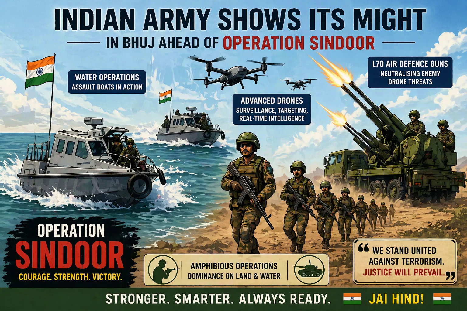 इसके साथ ही सेना ने एम्फीबियस ऑपरेशन का भी प्रदर्शन किया, जिसमें जल और थल दोनों मोर्चों पर एक साथ कार्रवाई की रणनीति दिखाई गई। इस अभ्यास ने स्पष्ट किया कि भारतीय सेना क्रीक एरिया जैसे चुनौतीपूर्ण इलाकों में भी पूरी तरह सक्षम है।