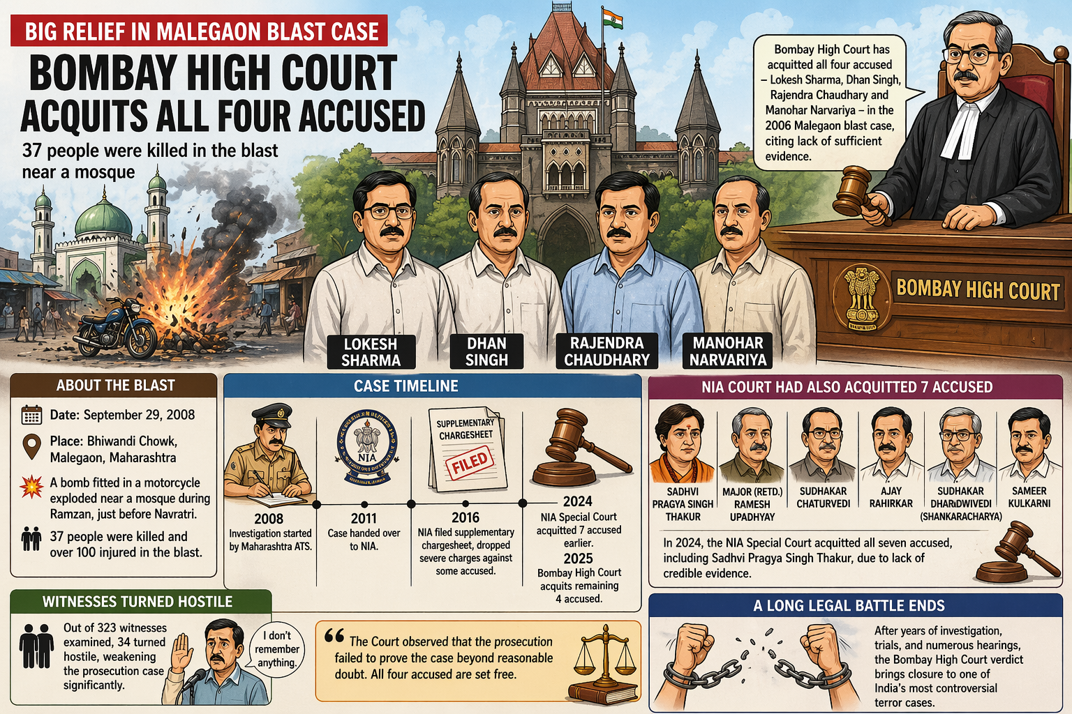 मालेगांव बम धमाका केस में बड़ा फैसला: बॉम्बे हाई कोर्ट ने चारों आरोपियों को किया बरी