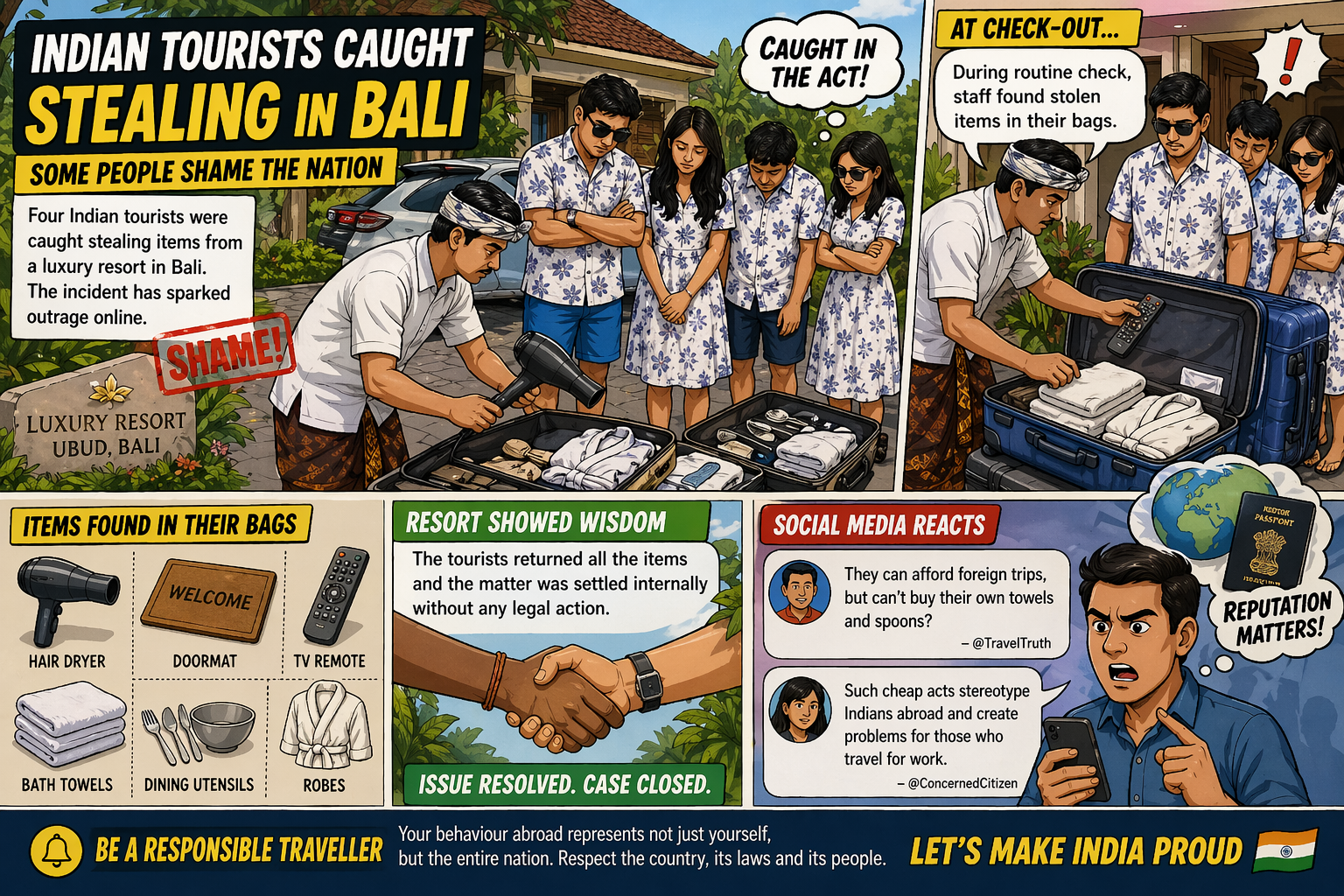 यह घटना एक बार फिर यह सोचने पर मजबूर करती है कि विदेश यात्रा के दौरान भारतीय पर्यटकों का आचरण कितना जिम्मेदार होना चाहिए। कुछ लोगों की गलत हरकतें पूरे देश की छवि को प्रभावित कर सकती हैं।