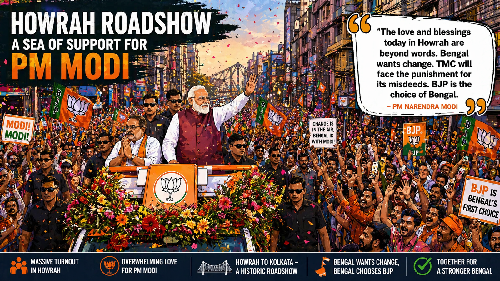 हावड़ा रोड शो में उमड़ा जनसैलाब, PM मोदी बोले—“बंगाल में परिवर्तन की लहर”