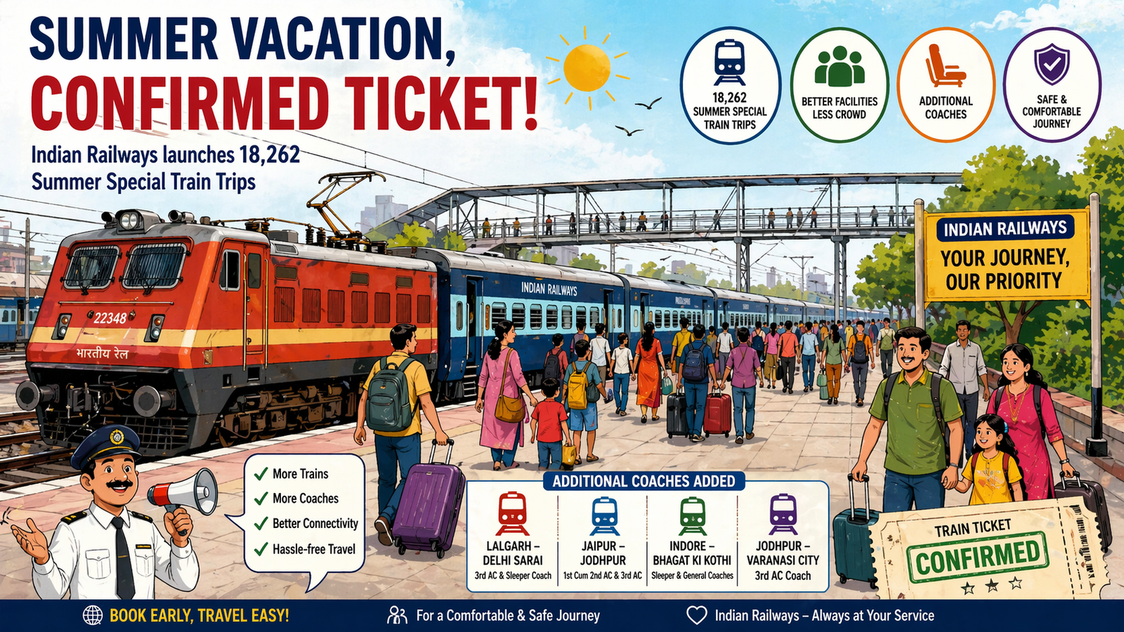 रेलवे की इस व्यापक योजना से खासतौर पर उन यात्रियों को राहत मिलेगी, जो गर्मियों में अपने गृह नगर जाने की योजना बना रहे हैं। बढ़ी हुई ट्रेन सेवाएं और अतिरिक्त कोच न सिर्फ टिकट की उपलब्धता बढ़ाएंगे, बल्कि यात्रा को भी अधिक आरामदायक बनाएंगे।